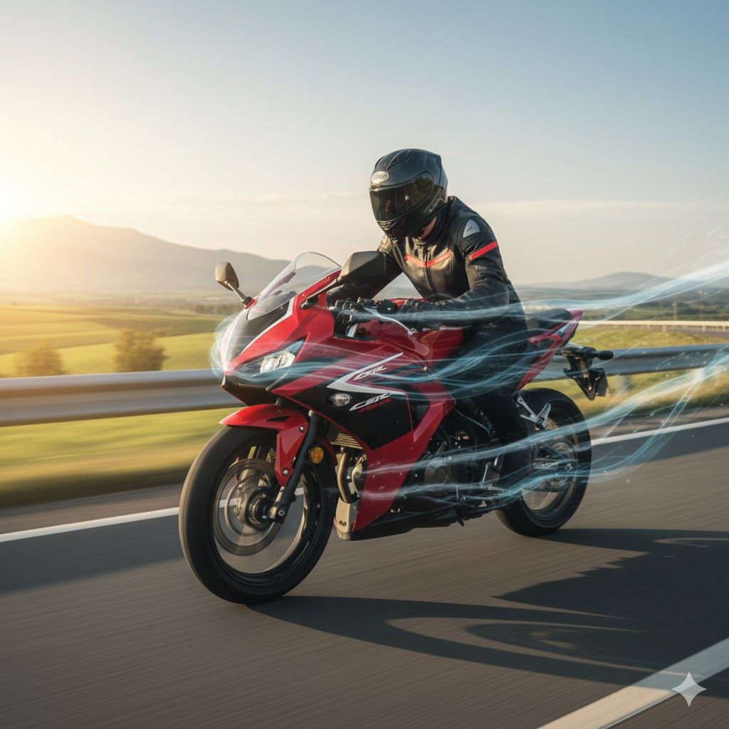 Desain fairing Honda CBR250RR tidak sekadar estetika. Bentuknya membantu membelah angin dan meningkatkan stabilitas saat motor dipacu pada kecepatan tinggi. Pengendara akan merasakan motor tetap tenang dan planted, baik saat lurus maupun saat melewati tikungan panjang.