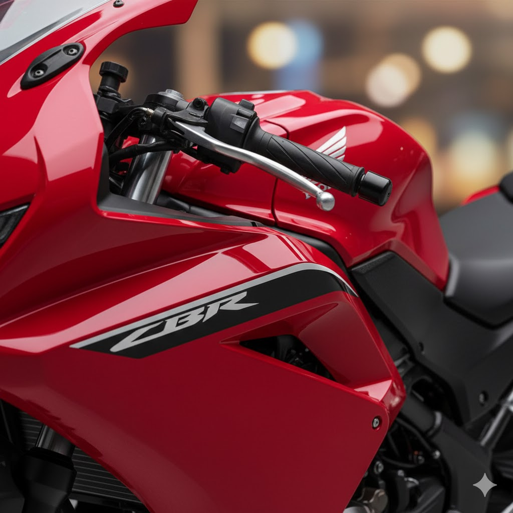 Honda menempatkan standar kualitas tinggi pada CBR250RR. Mulai dari cat, kontur fairing, kualitas plastik, hingga finishing sasis—sem semuanya terasa premium. Detail seperti jahitan jok dan bentuk tangki dirancang sangat rapi.