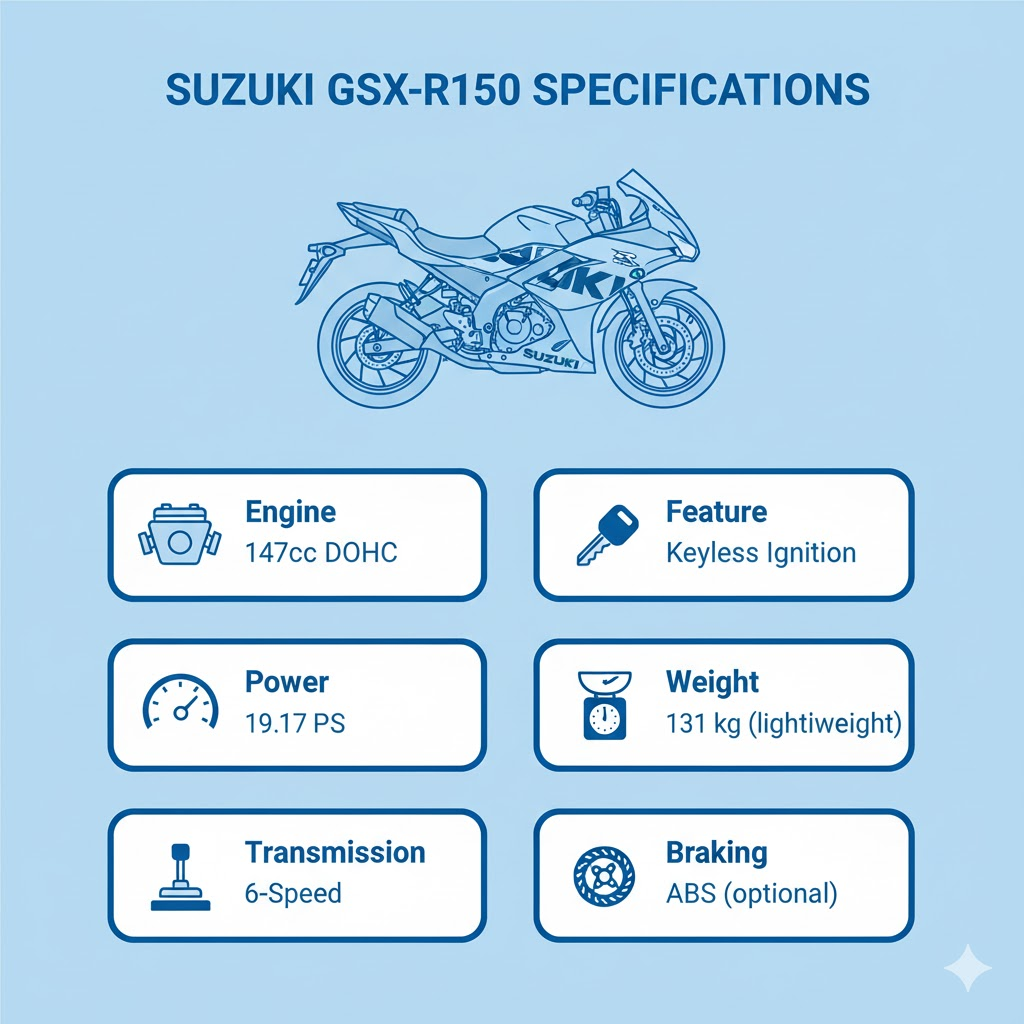 Diluncurkan pertama kali pada tahun 2017, GSX-R150 menjadi pesaing langsung Yamaha R15 dan Honda CBR150R, namun dengan karakter unik: lebih ringan, lebih responsif, dan lebih agresif di putaran tinggi.